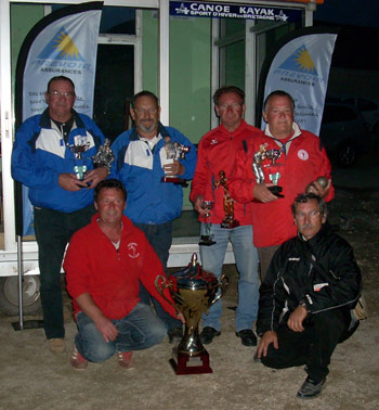 Hervé DORE et Bernard MORIN de la Pétanque Lanestérienne étaient opposés à Jacques AZEMAR et André MORICE de la Bogue d'Or Questembert, et Georges DANO et Yves CLEDIC de l'ASPTT Vannes à Jacques LE BRET et Patrick REVy du Vannes Pétanque Club