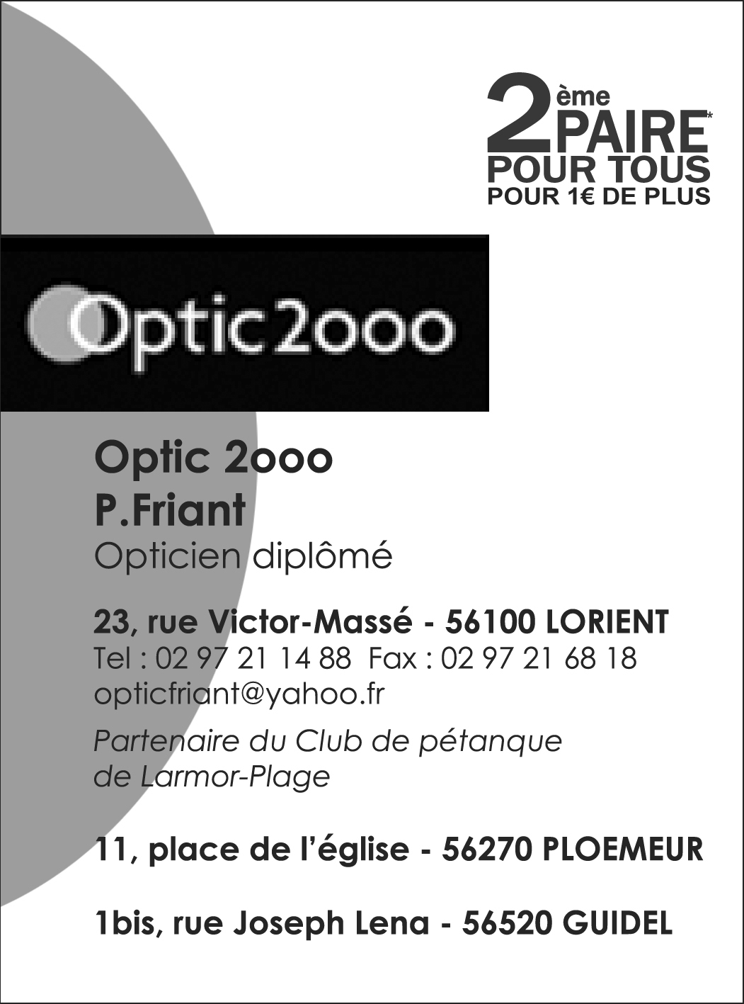 02 97 21 14 88 - opticfriant@yahoo.fr - Partenaire du club de Pétanque de Larmor Plage