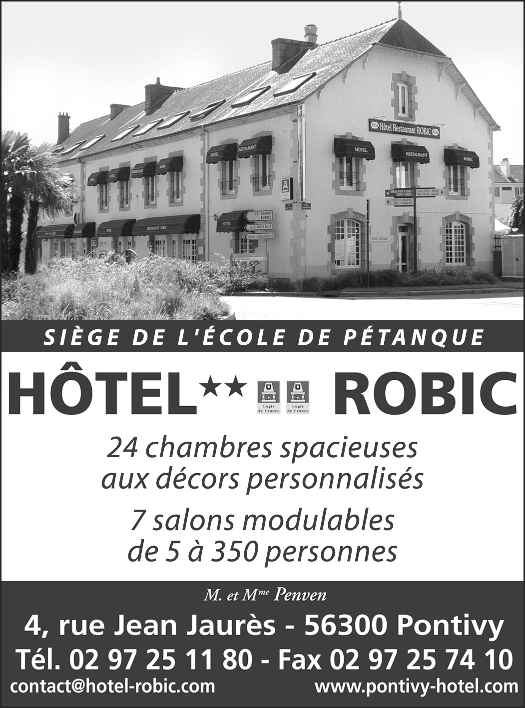 02 97 25 11 80 - contact@hotel-robic.com - Siège de l'école de pétanque de Pontivy