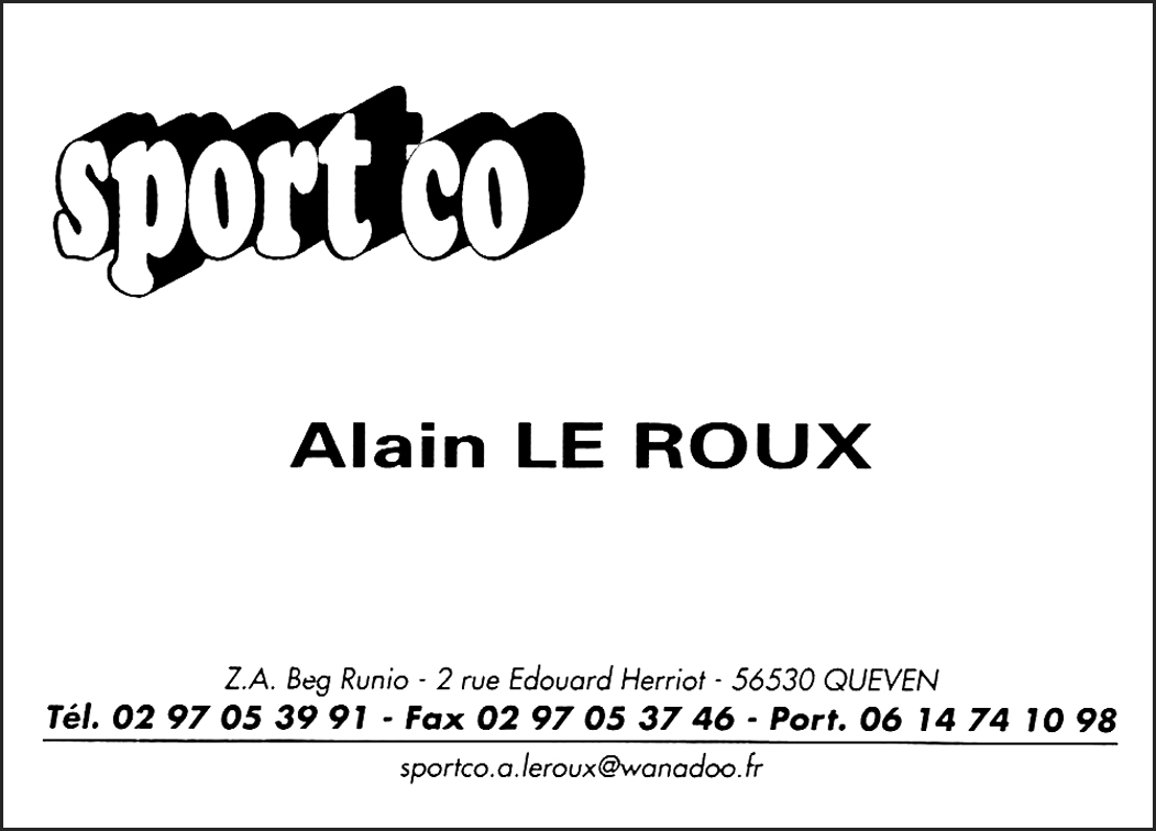 ZA beg Runio 2 rue Edouard Herriot Quéven - sportco.a.leroux@wanadoo.fr - 02 97 05 39 91 - 06 14 74 10 98